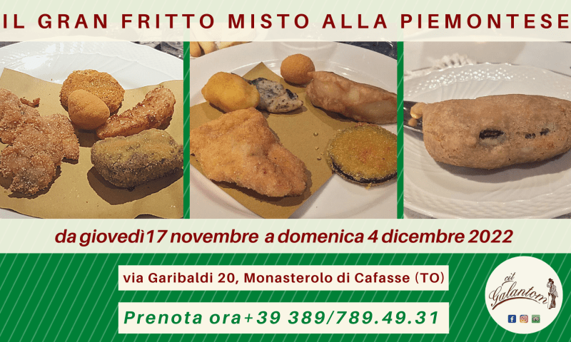 Anche quest’anno, a grande richiesta, torna al Cit Galantom il “Gran Fritto Misto alla Piemontese”: 40 pezzi di pura libidine! Prenota ora il tuo tavolo