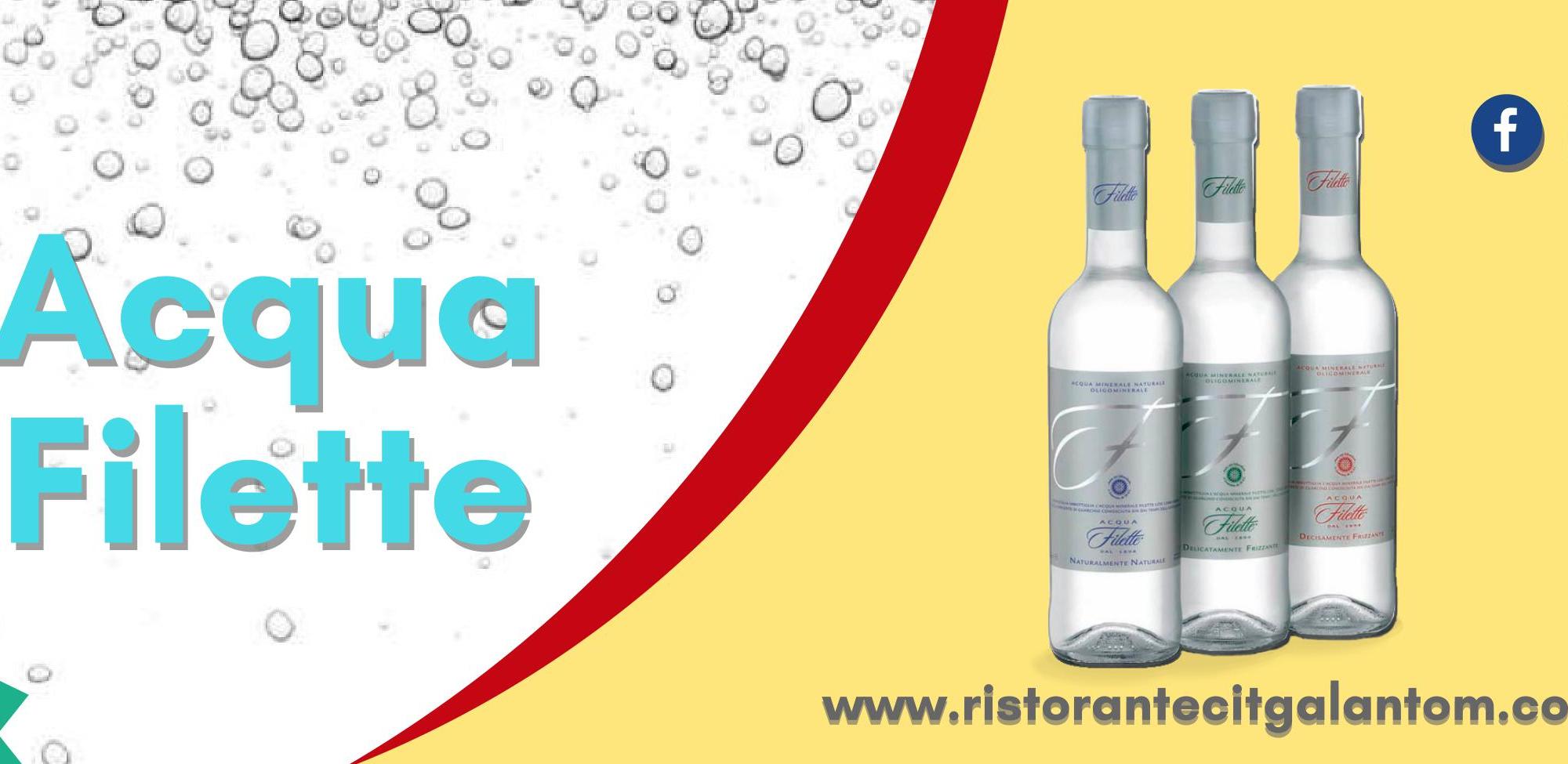 La Carta delle Acque del Cit Galantom non smette mai di stupire: l’acqua del mese è l’italianissima Acqua Filette, equilibrata nella sintesi dei suoi microelementi, minimalista nel design: è un piacere multisensoriale.