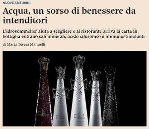 La versione online di oggi, sabato 26/09/2020, de “Il Sole 24 Ore” ha pubblico un articolo intitolato “Acqua, un sorso di benessere da intenditori”.