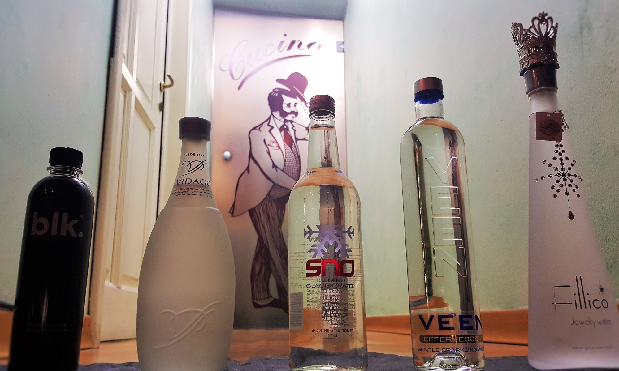 Al Cit Galantom si possono degustare acque provenienti da tutto il mondo, come la “BLK” proveniente dagli USA, unica acqua al mondo ad essere naturalmente di color nero e dal gusto vulcanico, la “Fillico” dal Giappone, caratterizzata dal packaging raffinato, con tappo in oro e diamanti incastonati sulla bottiglia, oppure la lombarda “Solé-Arte” dalla bollicina piccola e digestiva.